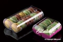 Fekete színű macaronos doboz, ezüst felirattal 6 db macaronhoz. Egy csomag 10 db macaronos dobozból áll.