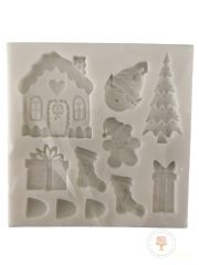 Szilikon forma, mely fondant, marcipán díszekhez hazsnálható. Fenyőágak, bogyók, levelek.